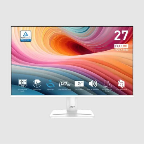 The MSI PRO MP275W E2 27" 120Hz IPS FHD Monitor is a flexible display designed for those seeking a combination of visual clarity, smooth performance, and current features. The PRO MP275W E2 monitor's 27-inch screen has a Full HD resolution of 1920 x 1080, resulting in clear and detailed graphics suitable for a variety of activities, including productivity and office work, video consumption, and casual gaming. The IPS panel of PRO MP275W E2 provides outstanding color accuracy and consistency over a broad range of viewing angles, making it suitable for applications requiring exact color reproduction, such as picture editing and content creation. Whether viewed straight in front or at an angle, the colors stay true to life. One of this PRO MP275W E2 monitor's distinguishing characteristics is its 120Hz refresh rate, which adds a new degree of smoothness to your viewing experience. This is especially useful with fast-paced content, as fluidity of movement may considerably improve the entire experience. This PRO MP275W E2 monitor's 1ms (MPRT) and 4ms (GtG) reaction times help to eliminate motion blur and ghosting, ensuring that fast-moving pictures stay sharp and clear, especially during gaming or action-packed movie moments. To improve gaming or video playback, the Adaptive-Sync technology synchronizes the monitor's refresh rate with your graphics card, reducing screen tearing and stuttering for a smooth, immersive experience. The display's anti-glare coating reduces reflections, allowing you to work or play comfortably in highly light areas while decreasing eye strain over extended durations. In terms of connection, the MSI PRO MP275W E2 has one HDMI connector, one DisplayPort, and a headphone jack, providing a variety of ways to connect to devices such as game consoles, laptops, and desktop computers. The built-in speakers deliver easy audio, reducing the need for extra external speakers for occasional use. This function is particularly beneficial for meetings, video conferencing, or consuming media without the need for further equipment. The monitor's sleek, minimalist design makes it a great fit for modern workspaces or gaming setups, while its practical features, such as Adaptive-Sync and built-in speakers, enhance its functionality for a wide variety of tasks.