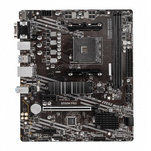 | Supported Storage | AMD B550 Chipset 4x SATA 6Gb/s ports 1x M.2 slot (Key M) (from AMD Processor) B550M PRO Supports PCIe 4.0/ 3.0 x4 1 Supports SATA 6Gb/s Supports 2242/ 2260/ 2280 storage devices |